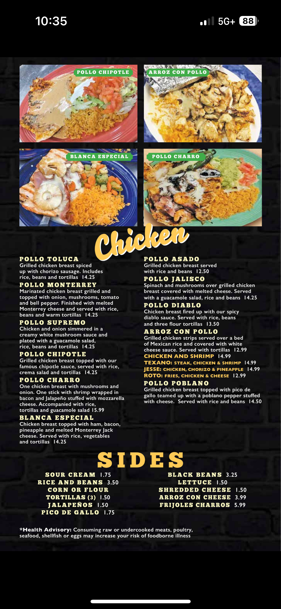 Mi Casa Dinner Menu